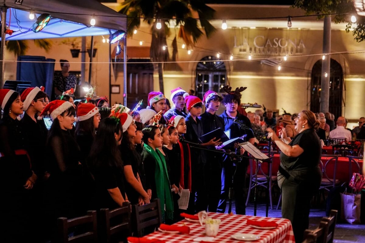 La emocionante atmósfera navideña arropó la actuación del Coro Infantil del Instituto Municipal de Cultura, Turismo y Arte de Mazatlán, la noche de este 12 de diciembre en la Plazuela Machado, escenario de un memorable concierto de villancicos que deleitó a cientos de espectadores.