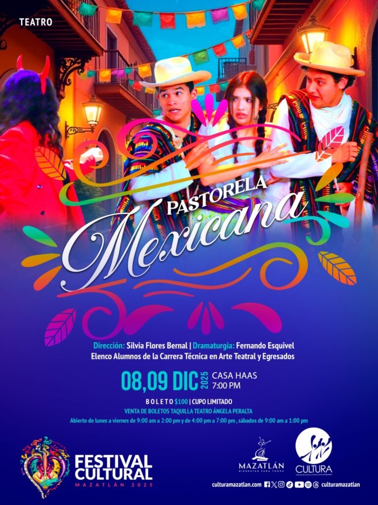“Pastorela Mexicana”, una de las puestas en escena más queridas de la temporada navideña será presentada por el Instituto de Cultura de Mazatlán este lunes 8 y martes 9 de diciembre a las 7:00 p.m. en Casa Haas.
