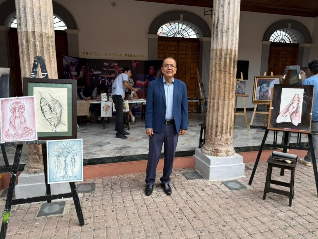 El pórtico del Teatro Ángela Peralta se ha transformado en un espacio vivo de creación, diálogo y encuentro, gracias a la instalación realizada por alumnos de la Licenciatura en Artes Plásticas del Centro Municipal de las Artes (CMA), quienes exponen y ponen a la venta sus obras con un objetivo claro, recaudar fondos para realizar un viaje formativo a la Ciudad de México y ampliar su experiencia académica a través del contacto directo con museos, artistas y escuelas especializadas.