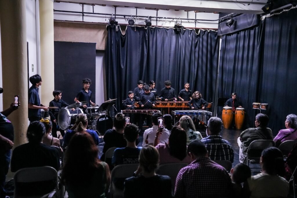 En un ambiente de alegría y camaradería, acompañados por familiares y amigos, los estudiantes del Taller de Percusiones de la Escuela de Música del Instituto de Cultura, Turismo y Arte de Mazatlán mostraron su notable progreso y confianza en el escenario.