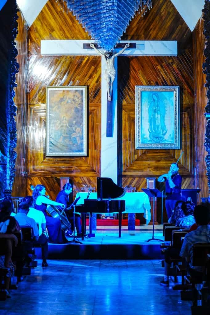 Una atmósfera de profunda calma y elevación espiritual se vivió este miércoles en la Iglesia Sagrada Familia, en el Fraccionamiento Gaviotas, donde Adagio Trio transformó la noche en un bálsamo de fe y esperanza como parte del programa “Cultura con Historia” llevado a cabo por el Instituto Municipal de Cultura, Turismo y Arte en el marco del Festival Cultural Mazatlán 2025.